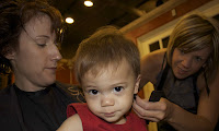 Sorry it's been so long. I had a great weekend. I got my haircut this morning with mom (thanks Aunt Janeen). When I was done dad took me out to breakfast. I had my favorite bacon with french toast. Later in the afternoon dad took me to my first Major League baseball game. We went with Uncle JD and Jackson. I had a lot of fun. The game was fun the the best part was playing in the playground. It was one fun filled day!!